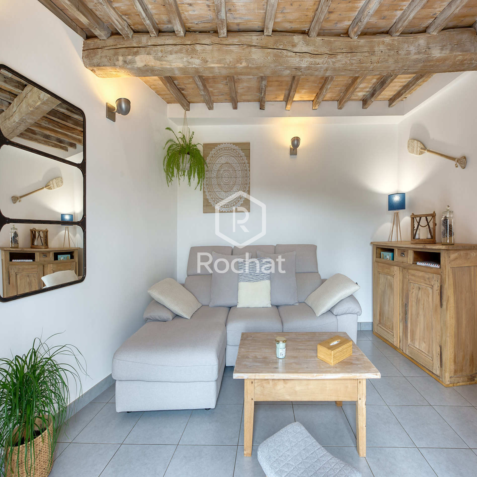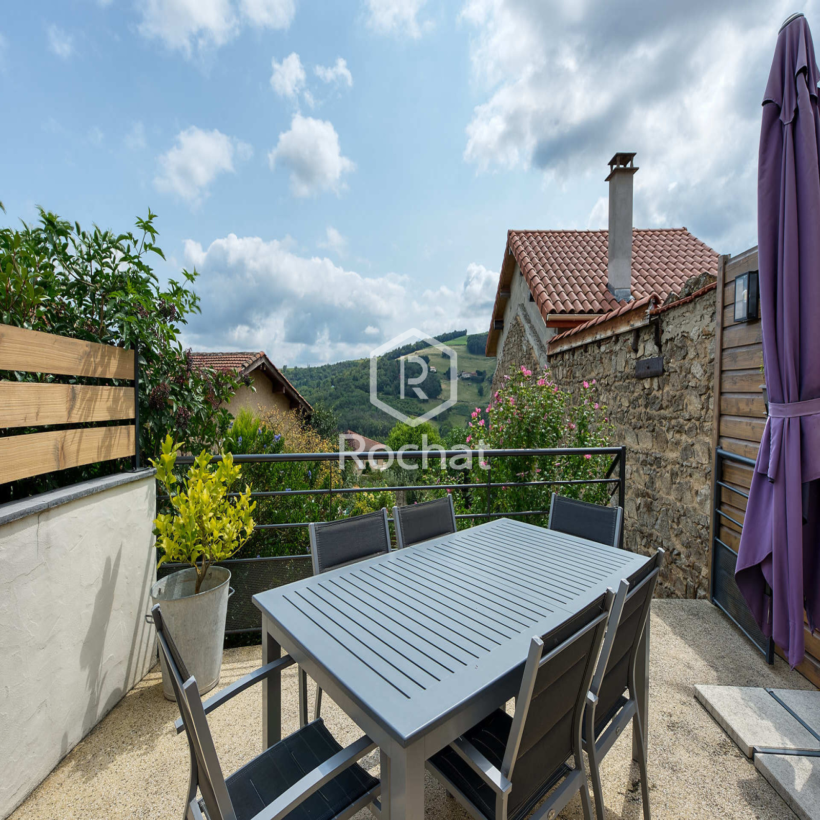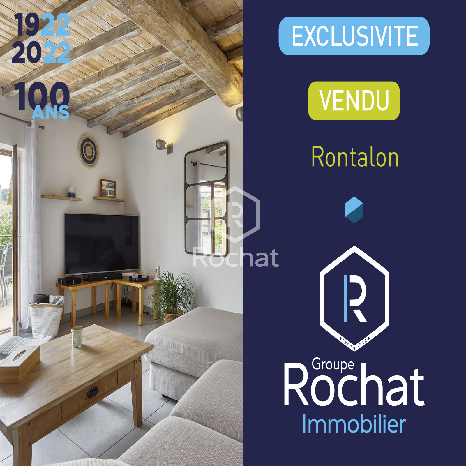 À Rontalon, a vendre superbe maison de village avec cachet. L'espace intérieur est formé d'une grande pièces de vie avec cuisine équipée. Cette pièce s'accompagne de 2 chambres, d'une salle de bain et un espace bureau. Le jardin clos arboré comporte une terrasse mesurant 15m² , sympa pour dîner dehors. Le bien vous fait profiter d'un garage.Une visite virtuelle est disponible sur demande. -