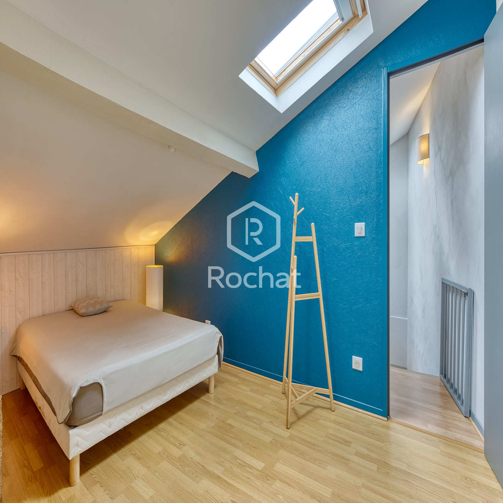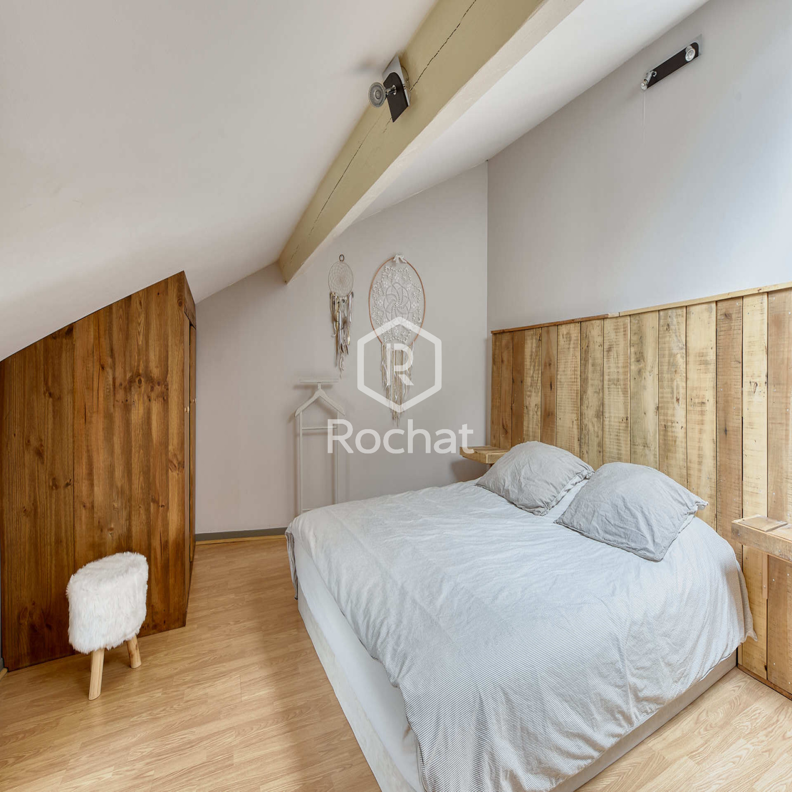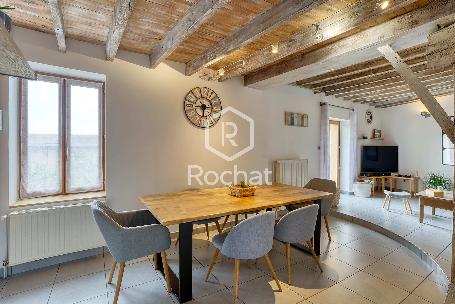 À Rontalon, a vendre superbe maison de village avec cachet. L'espace intérieur est formé d'une grande pièces de vie avec cuisine équipée. Cette pièce s'accompagne de 2 chambres, d'une salle de bain et un espace bureau. Le jardin clos arboré comporte une terrasse mesurant 15m² , sympa pour dîner dehors. Le bien vous fait profiter d'un garage.Une visite virtuelle est disponible sur demande. -