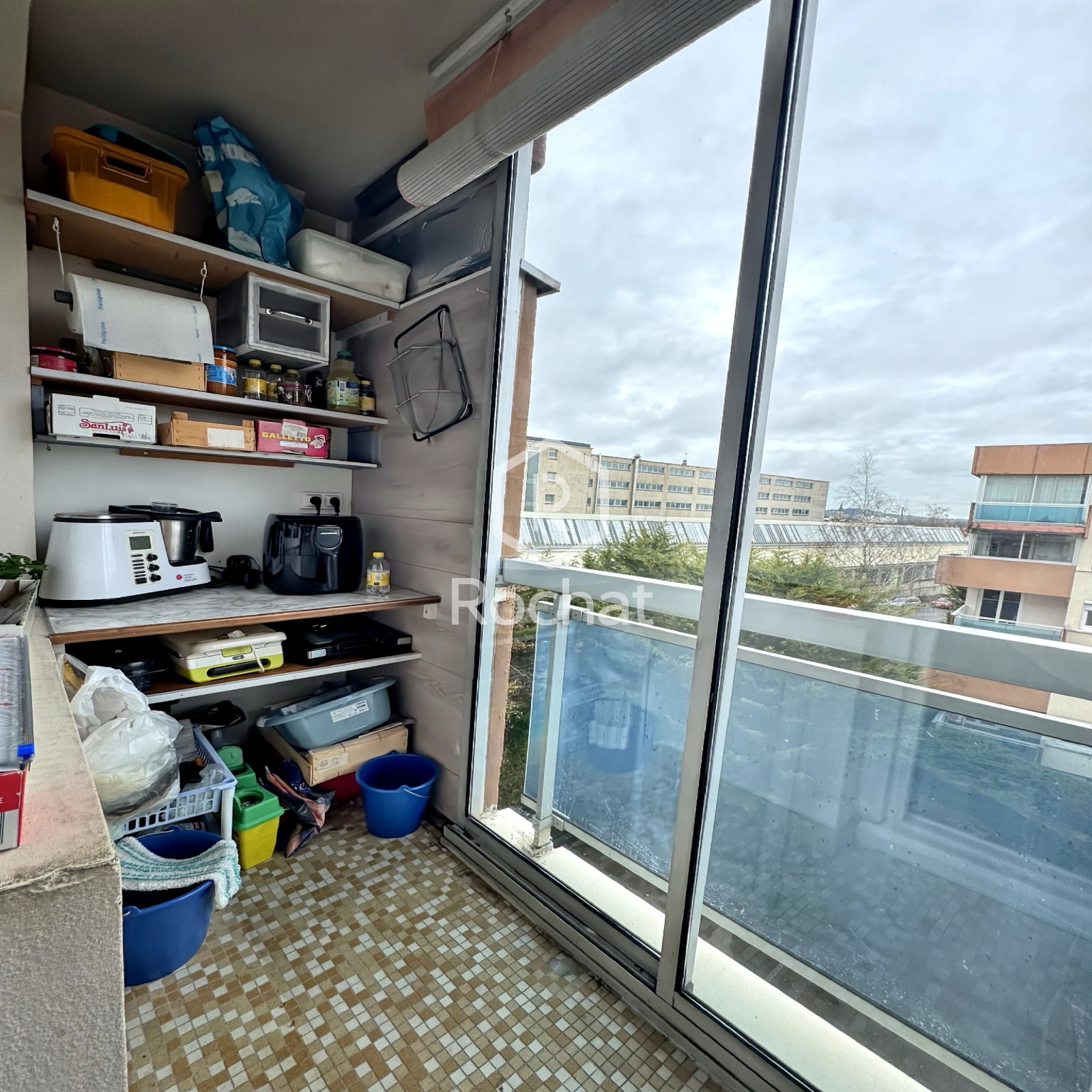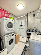 Disposition : un hall d’entrée avec placards intégrés desservant un salon/salle à manger ouvrant sur une loggia fermée et chauffée, une cuisine indépendante - équipée et meublée - avec une loggia fermée, 2 chambres avec armoires, dont une avec loggia faisant office de bureau, une salle de douche moderne avec douche à l’italienne et vasque simple, WC séparé. L'appartement dispose également d'un balcon donnant sur la loggia du séjour