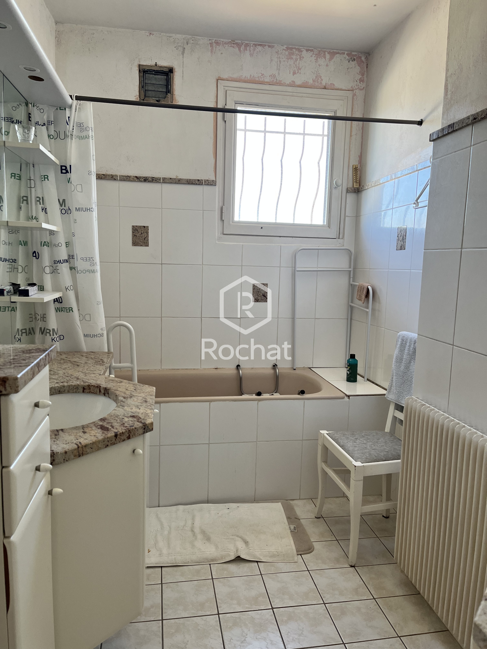 - Couloir desservant trois chambres, une salle de bain (baignoire) et un WC séparé