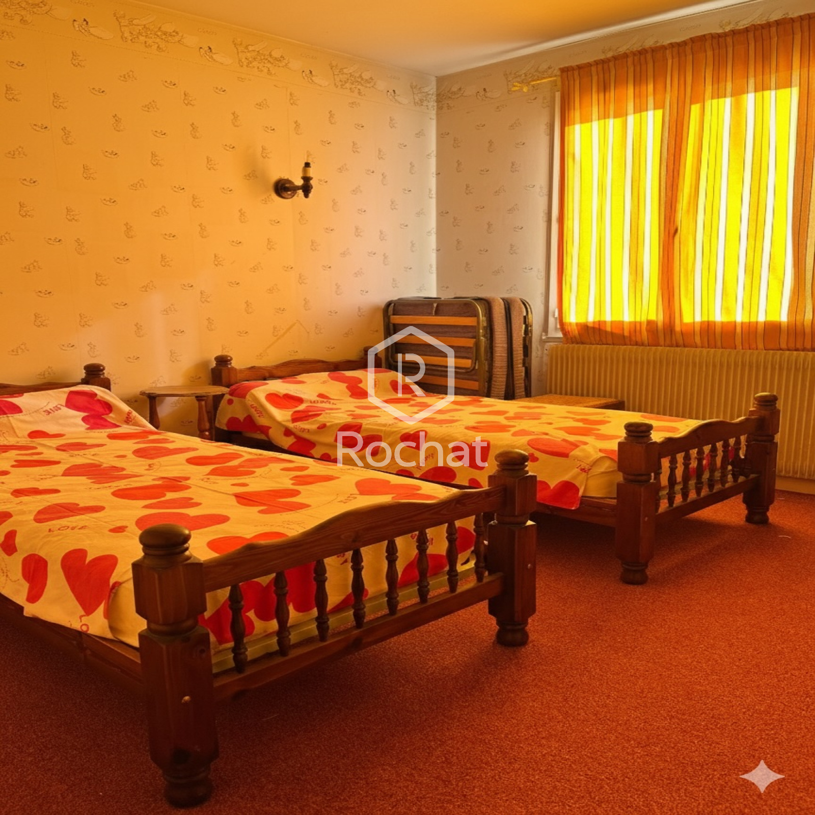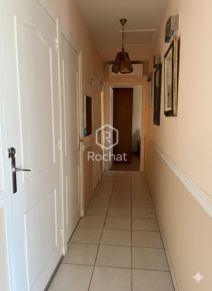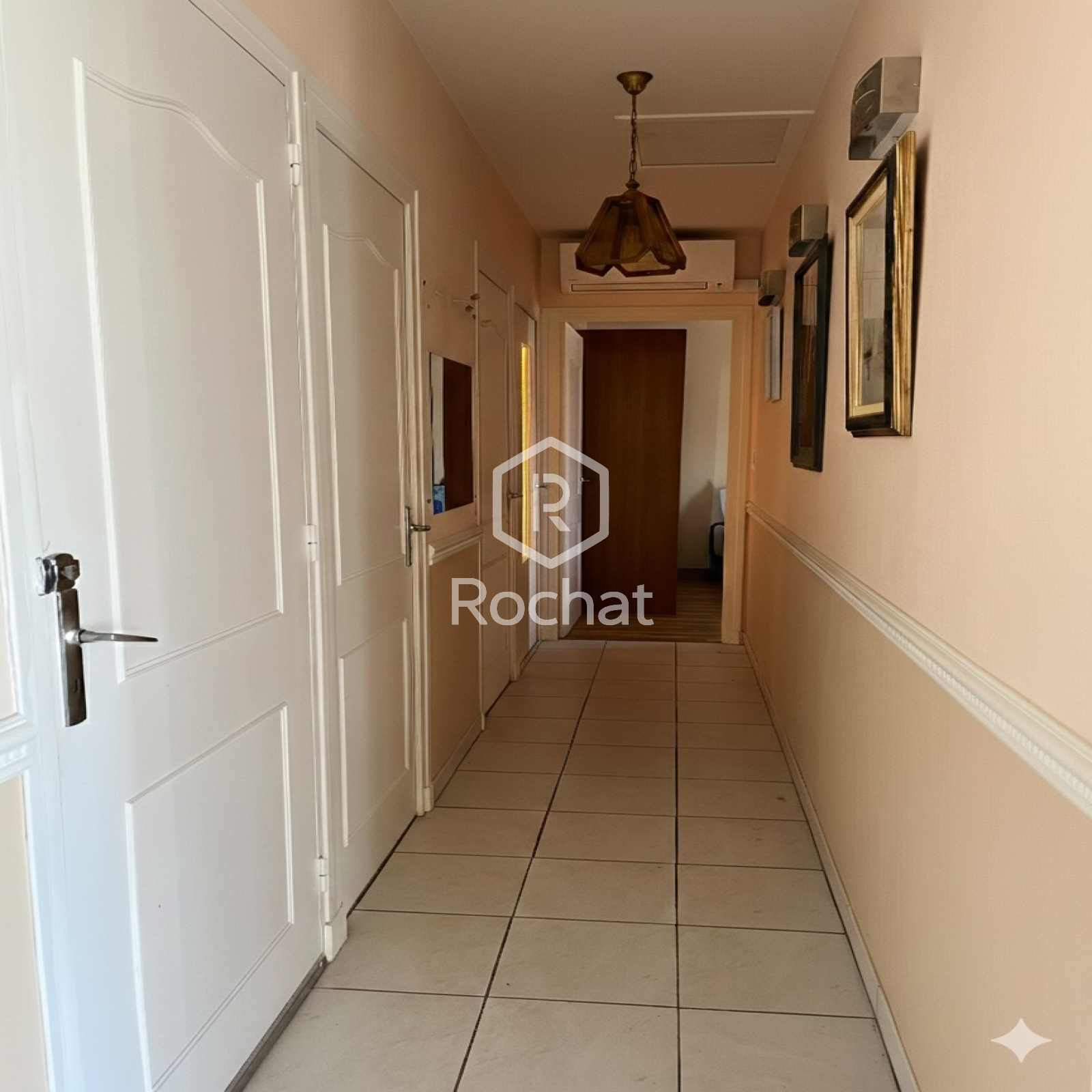 - Couloir desservant trois chambres, une salle de bain (baignoire) et un WC séparé