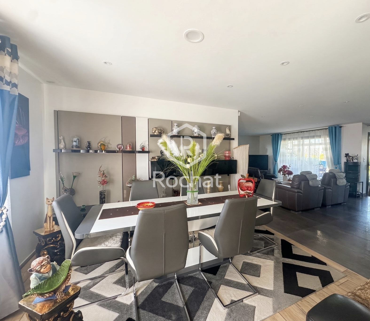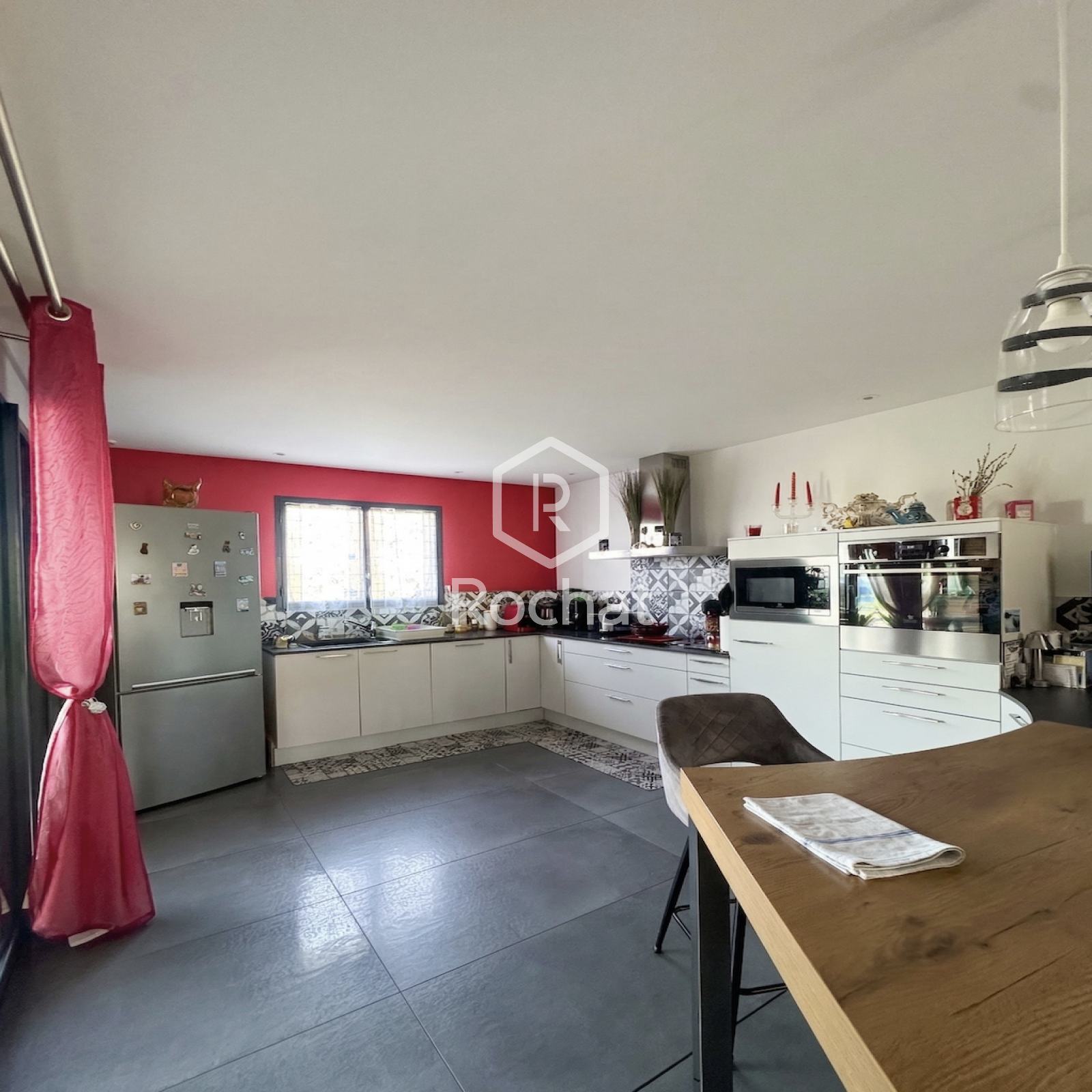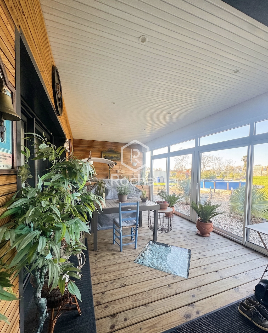 D’une surface habitable d’environ 150 m², la maison s’ouvre sur une entrée avec placard technique et rangements, desservant une cuisine meublée et équipée ouverte sur un vaste séjour. L’espace de vie principal développe plus de 54 m² et bénéficie d’une belle luminosité, avec un salon orienté plein sud. Une véranda d’environ 21 m², accessible depuis la cuisine, le séjour et la buanderie, prolonge agréablement cet espace.