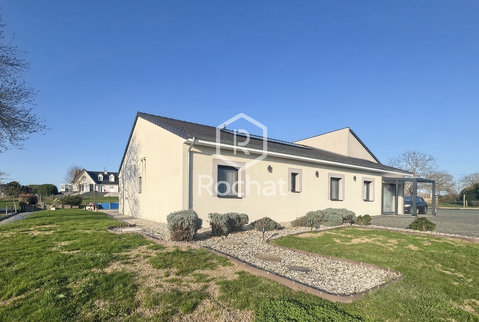 Maison contemporaine de plain-pied avec piscine semi enterrée – 150 m² habitables sur terrain de 2 403 m²