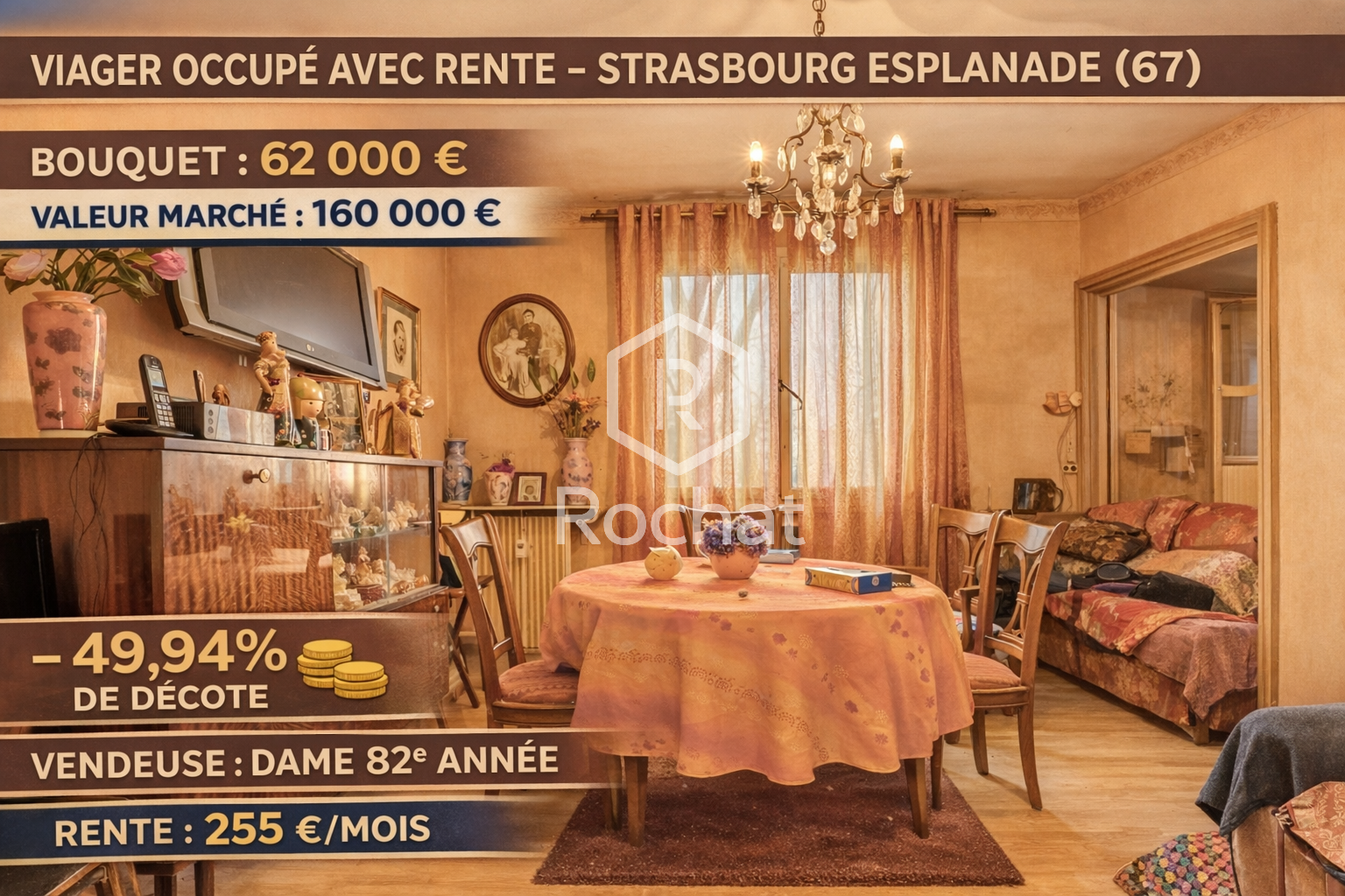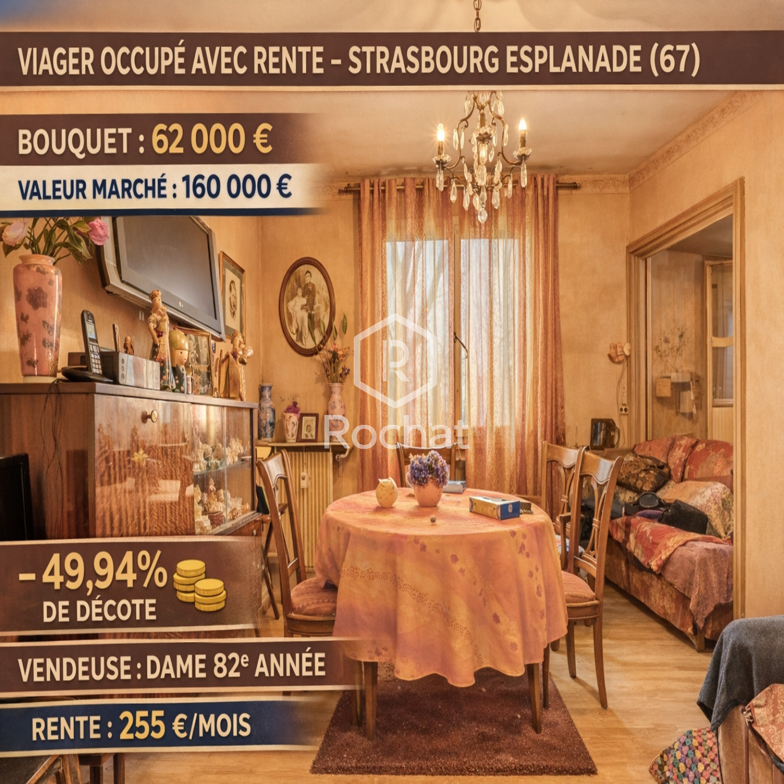 Âge vendeur : 82 ans (la venderesse conserve un droit d’usage et d’habitation)