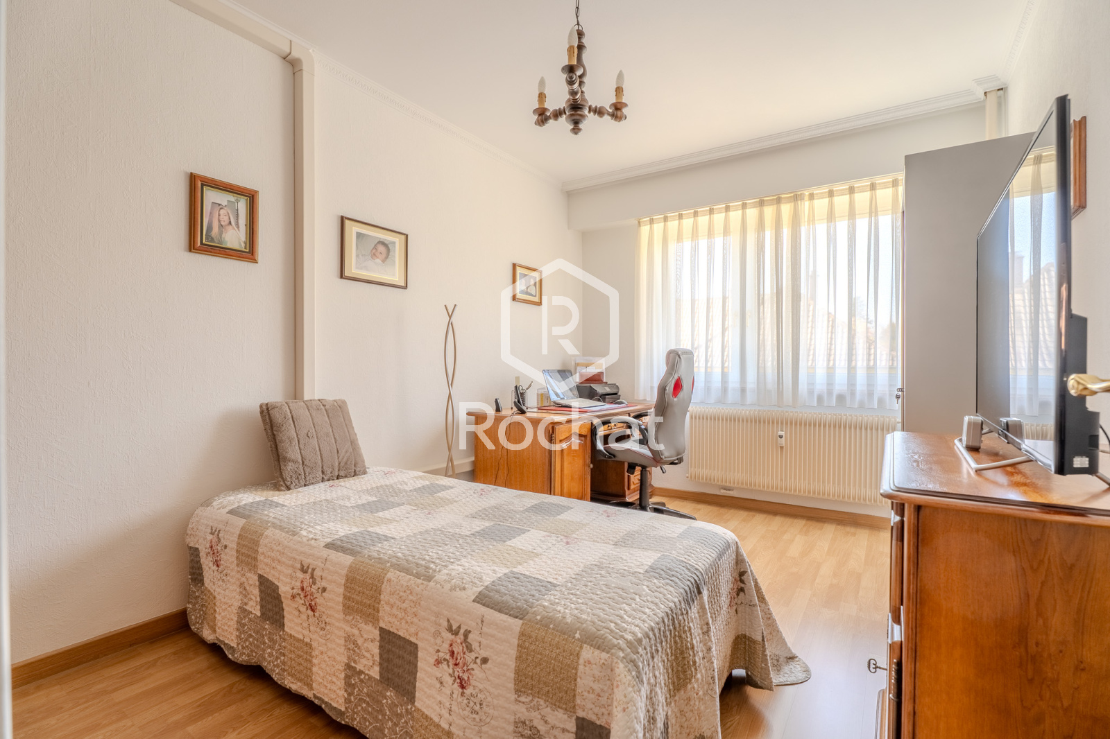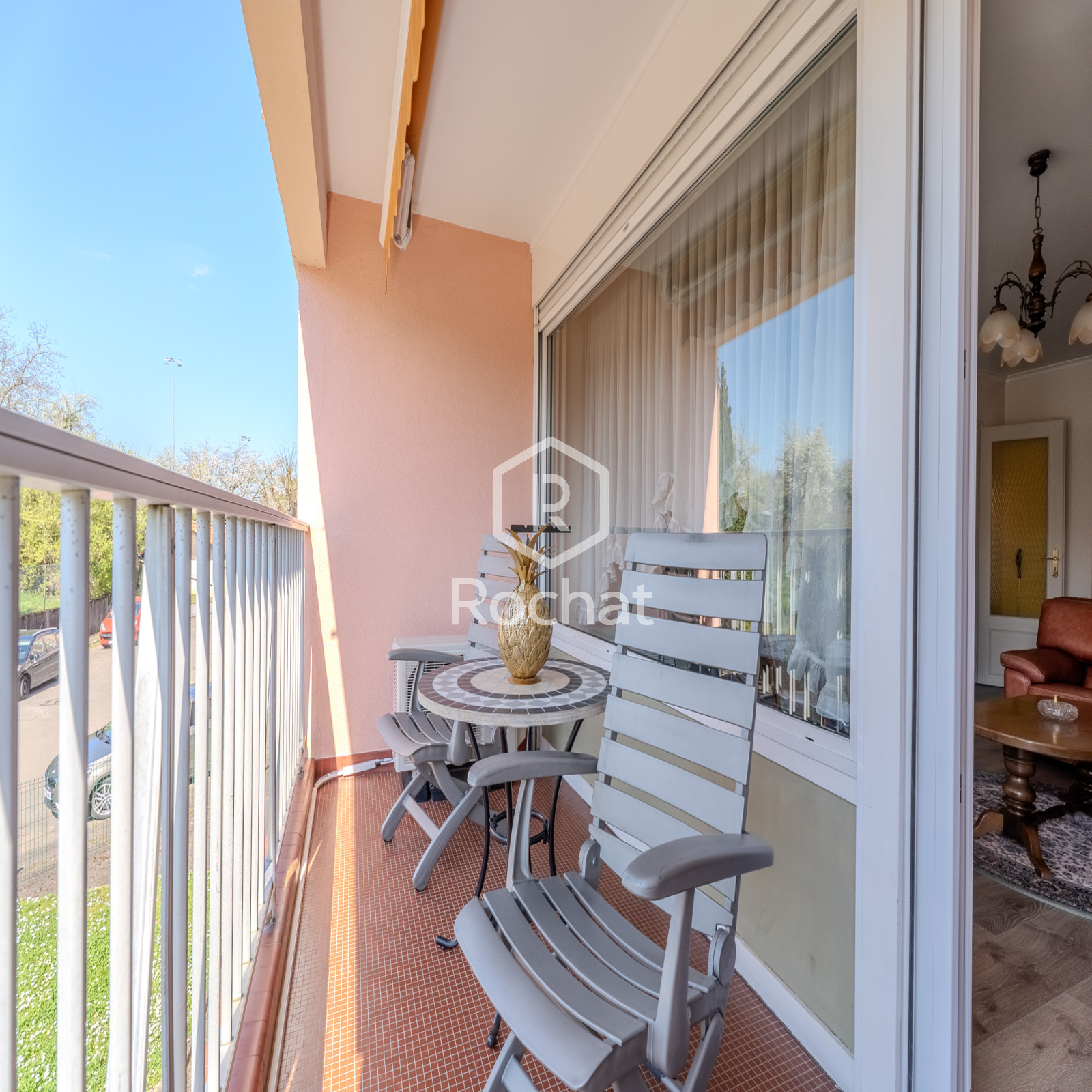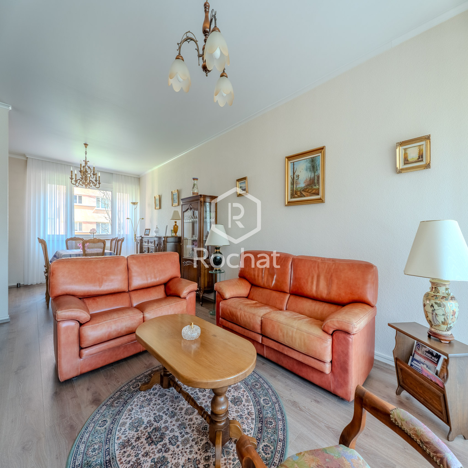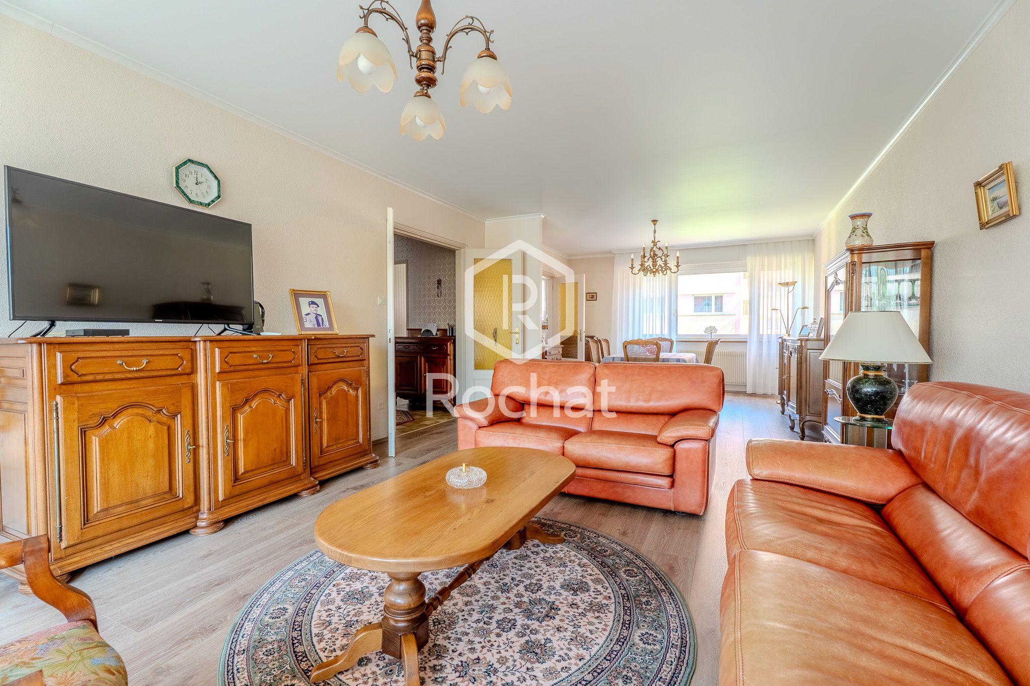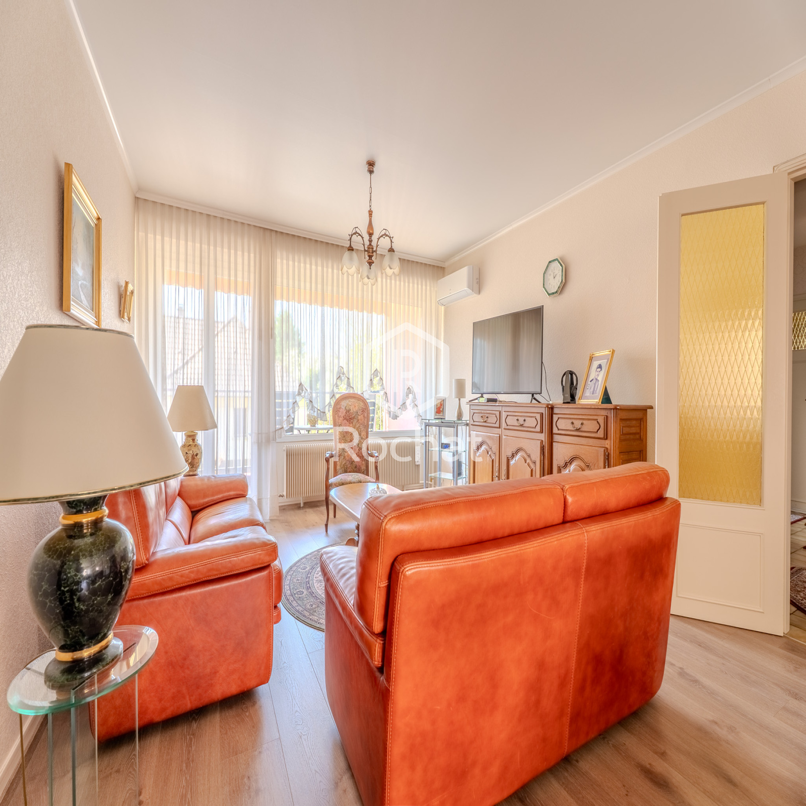 Viager occupé sur deux têtes (84 et 82 ans) à Bischheim. Appartement traversant de 93,27 m² avec garage, parking, balcon et cave. Résidence calme avec ascenseur.