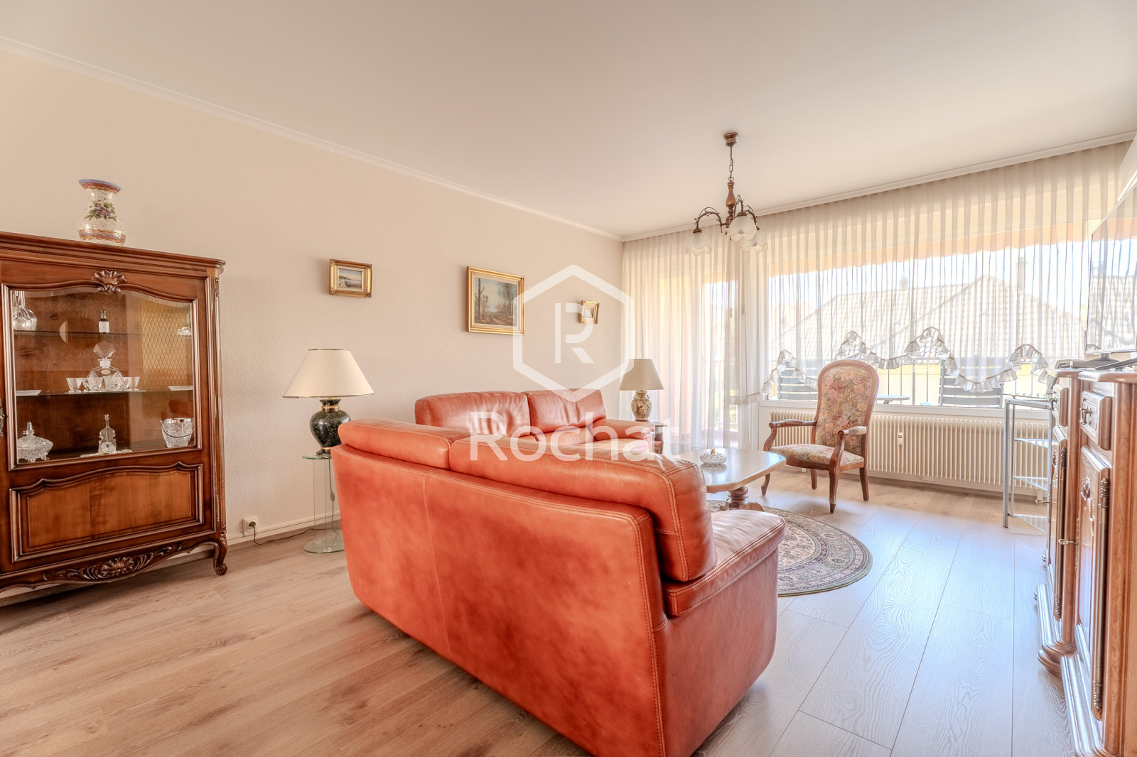 À Bischheim, dans une impasse résidentielle, au 1er étage avec ascenseur, ce spacieux appartement T3/4 de 93,27 m² loi Carrez offre des prestations soignées et un cadre de vie paisible.