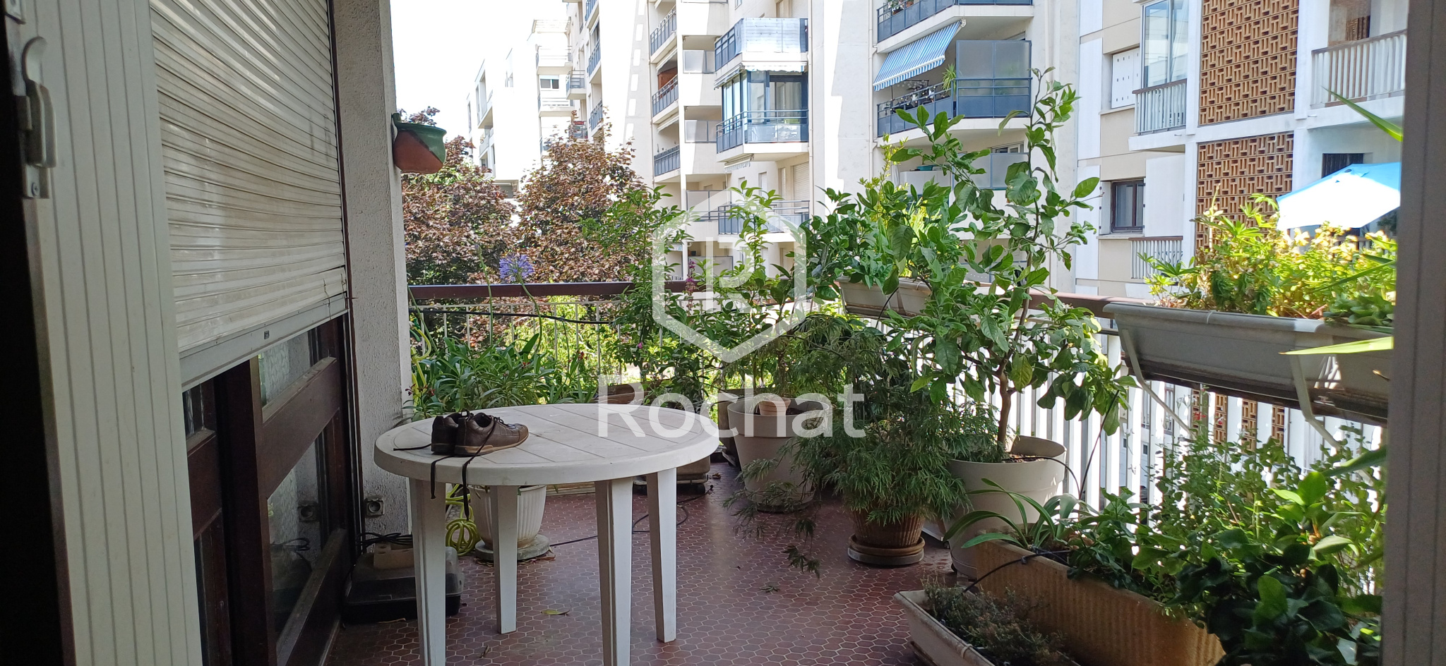 Un appartement traversant comprenant hall d'entrée avec placard, salon séjour avec des grandes baies vitrées donnant sur une terrasse, cuisine indépendante avec son balcon et son garde manger, salle de bain, 2 chambres dont une sur terrasse et 2 toilettes.
