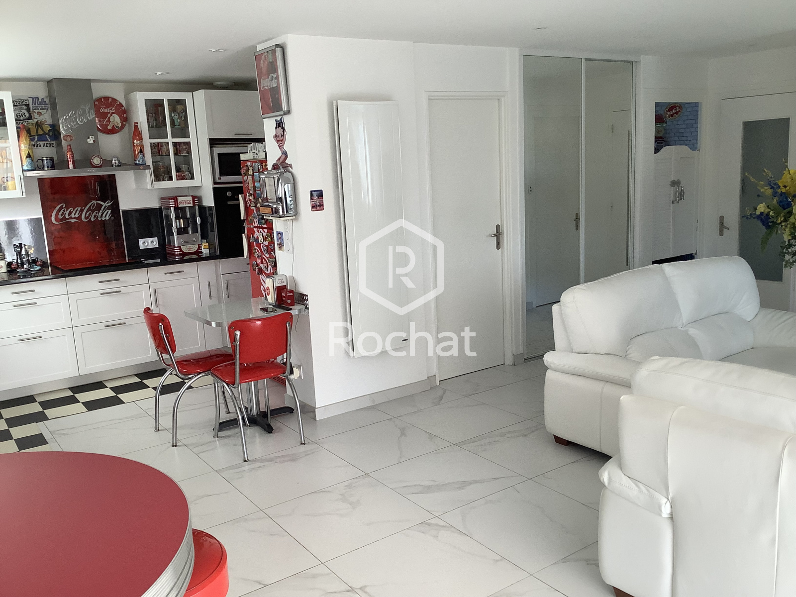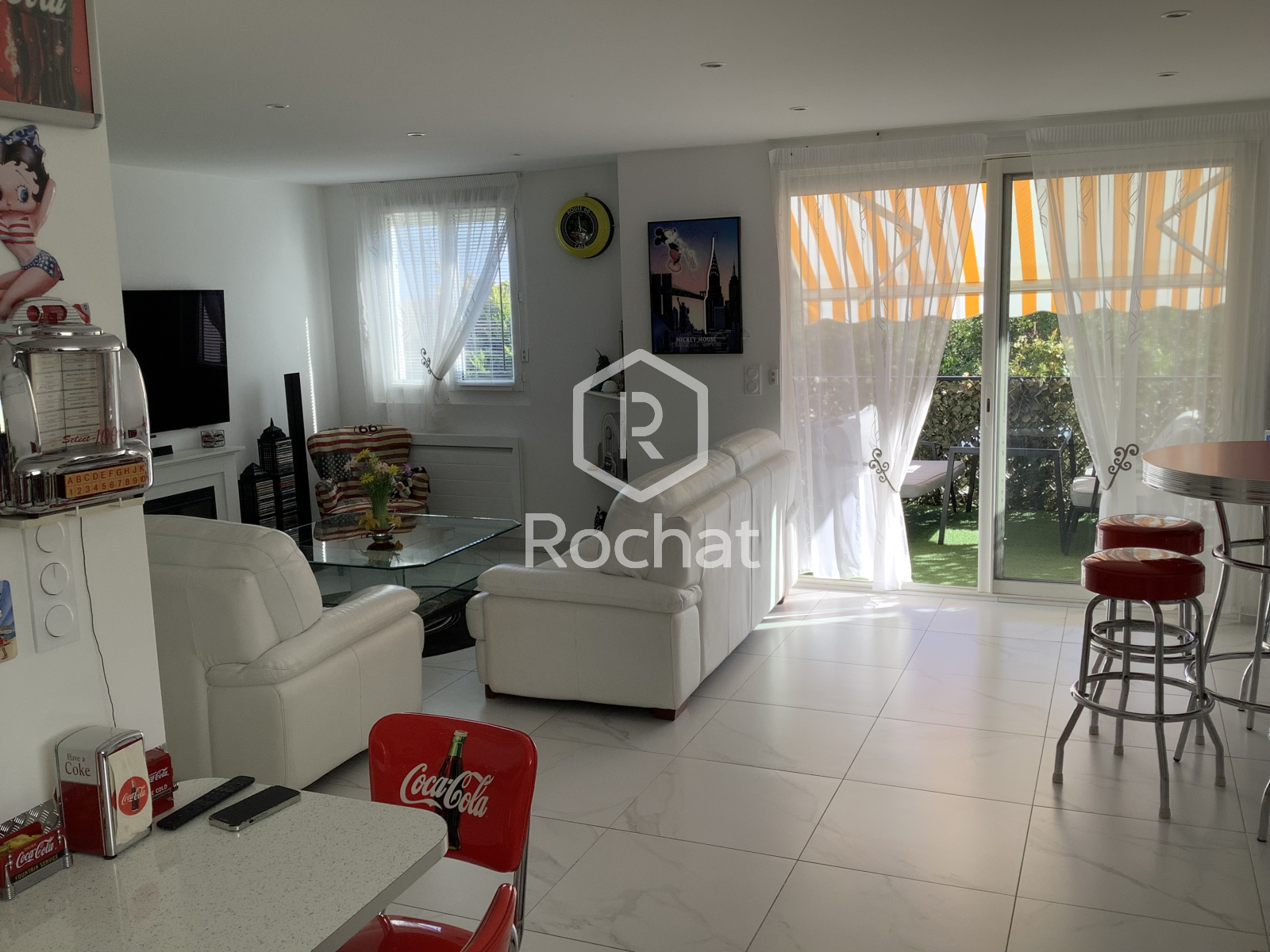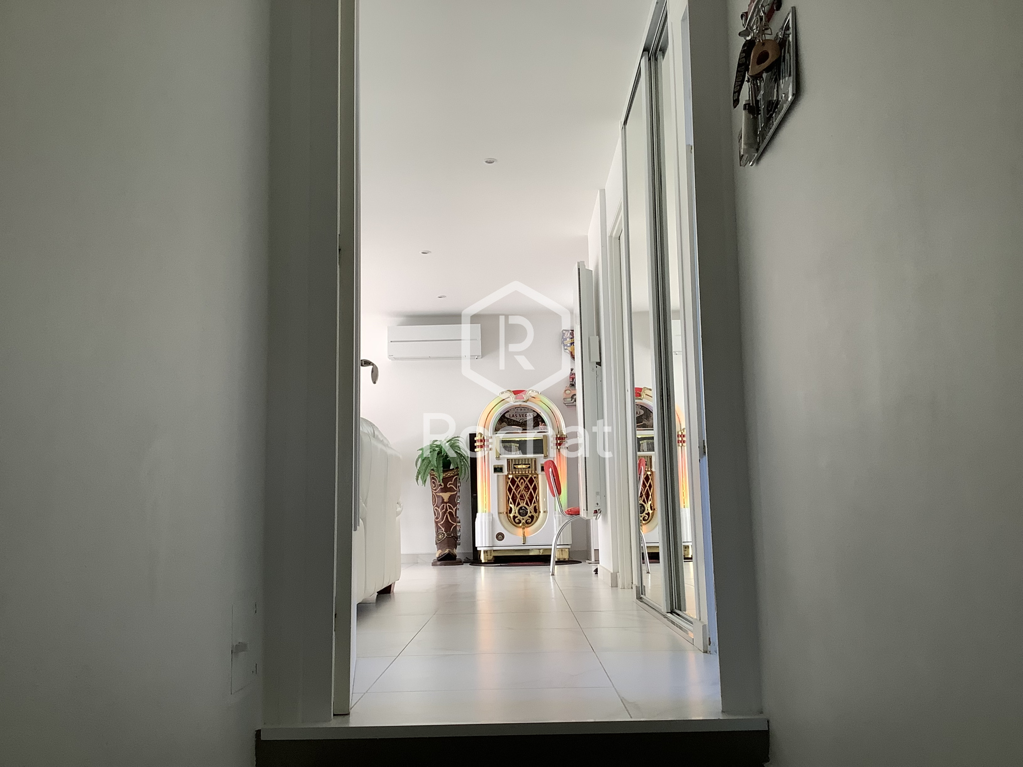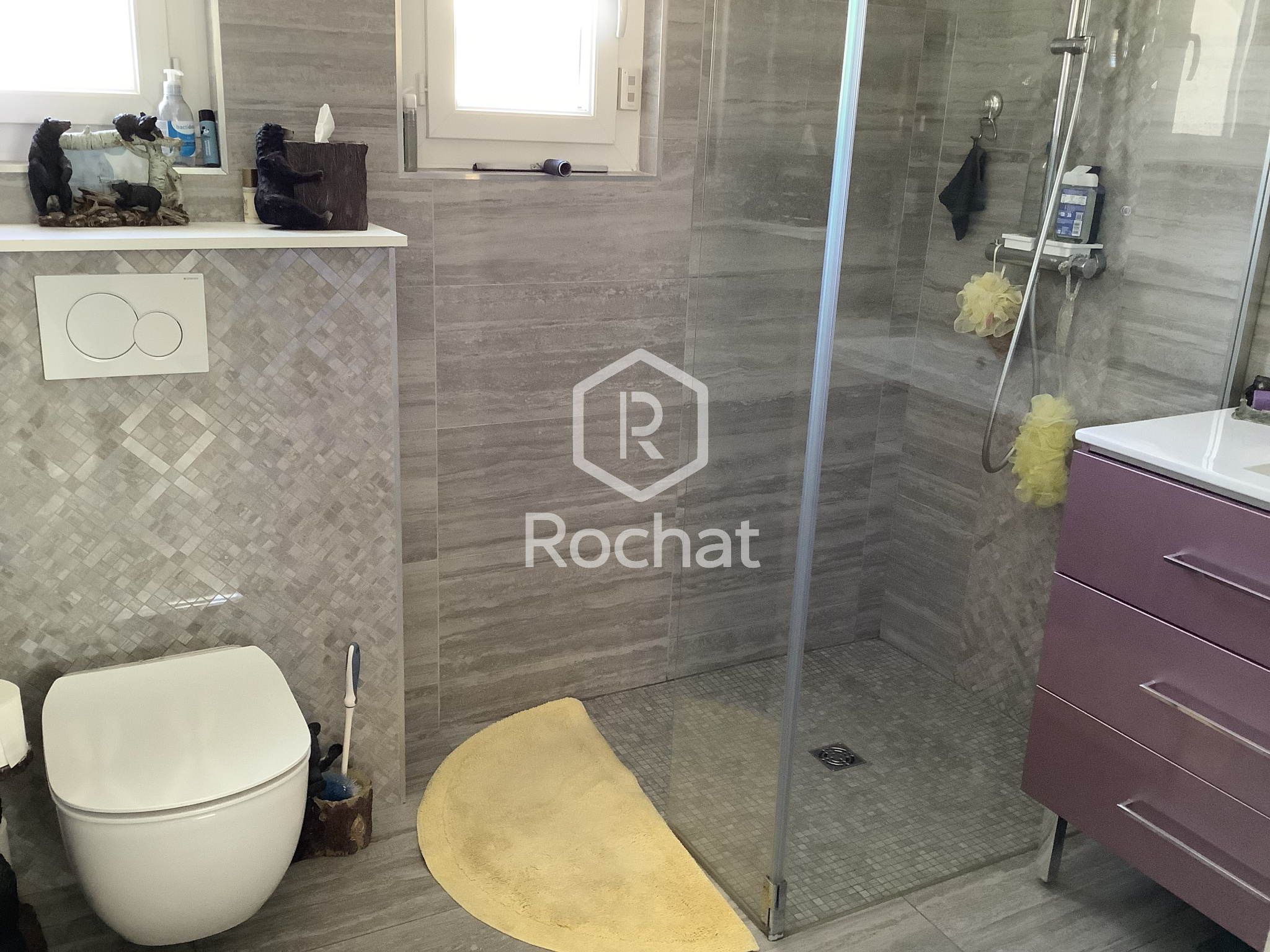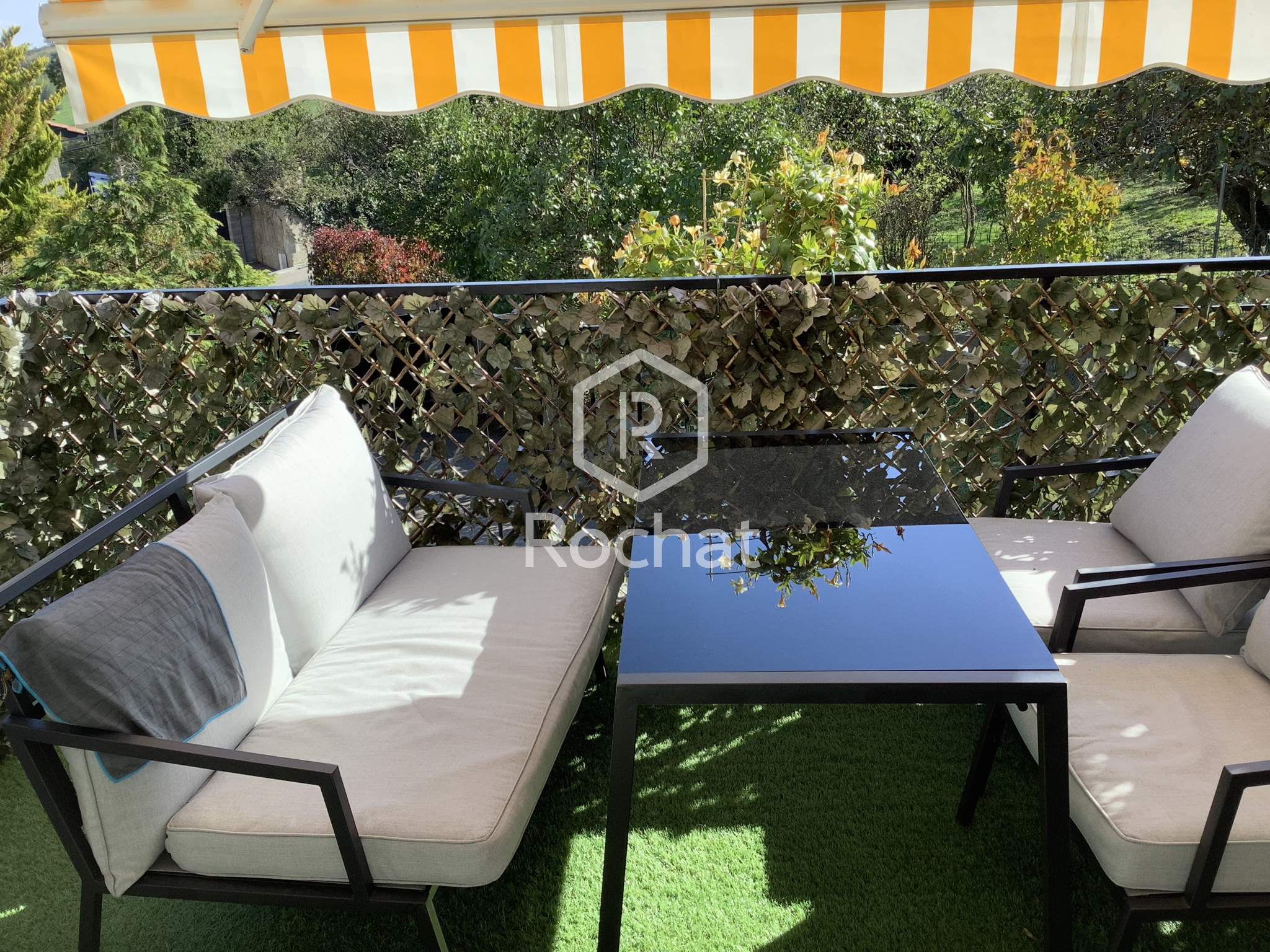 L’accès principal de la maison se fait par un escalier extérieur menant aux deux niveaux. En entrant, on gravit quelques marches et on trouve à droite, côté nord, une première chambre, puis une salle de bain. Plus loin, la cuisine, ouverte sur le séjour forme un espace de vie convivial et lumineux. Le séjour, orienté plein sud, donne accès à un balcon-terrasse d’environ 10 m², bénéficiant d’un ensoleillement généreux tout au long de la journée.
