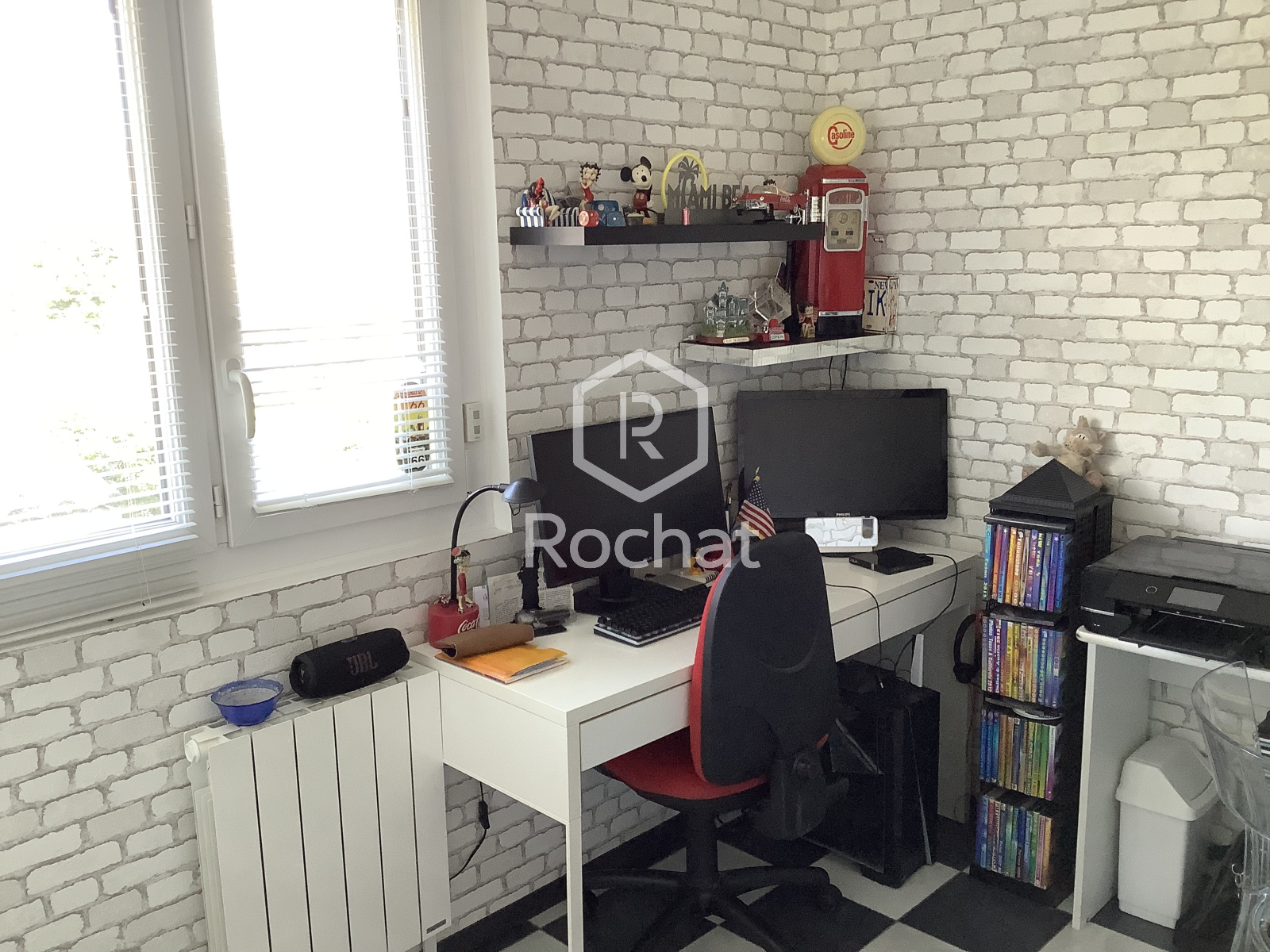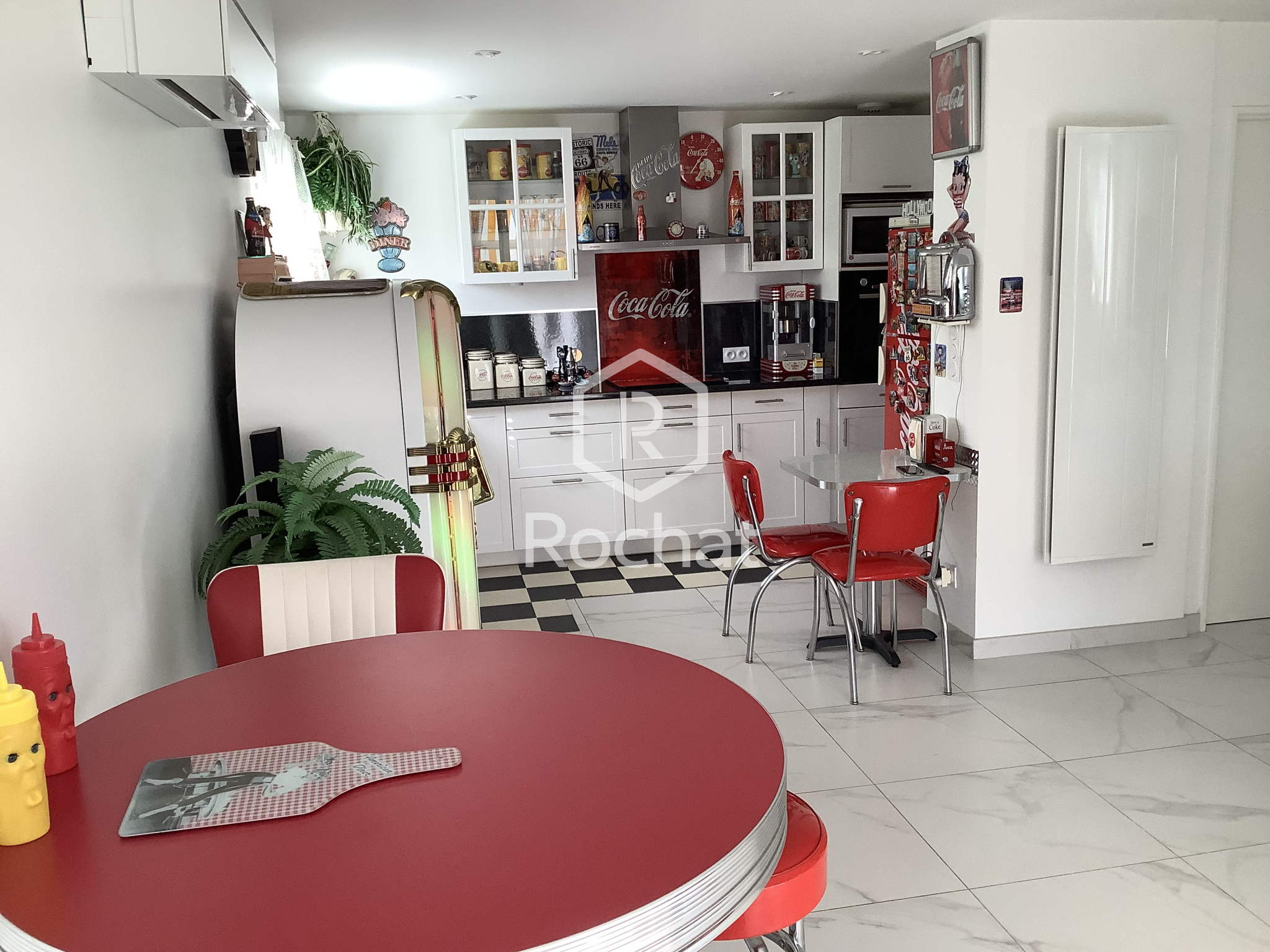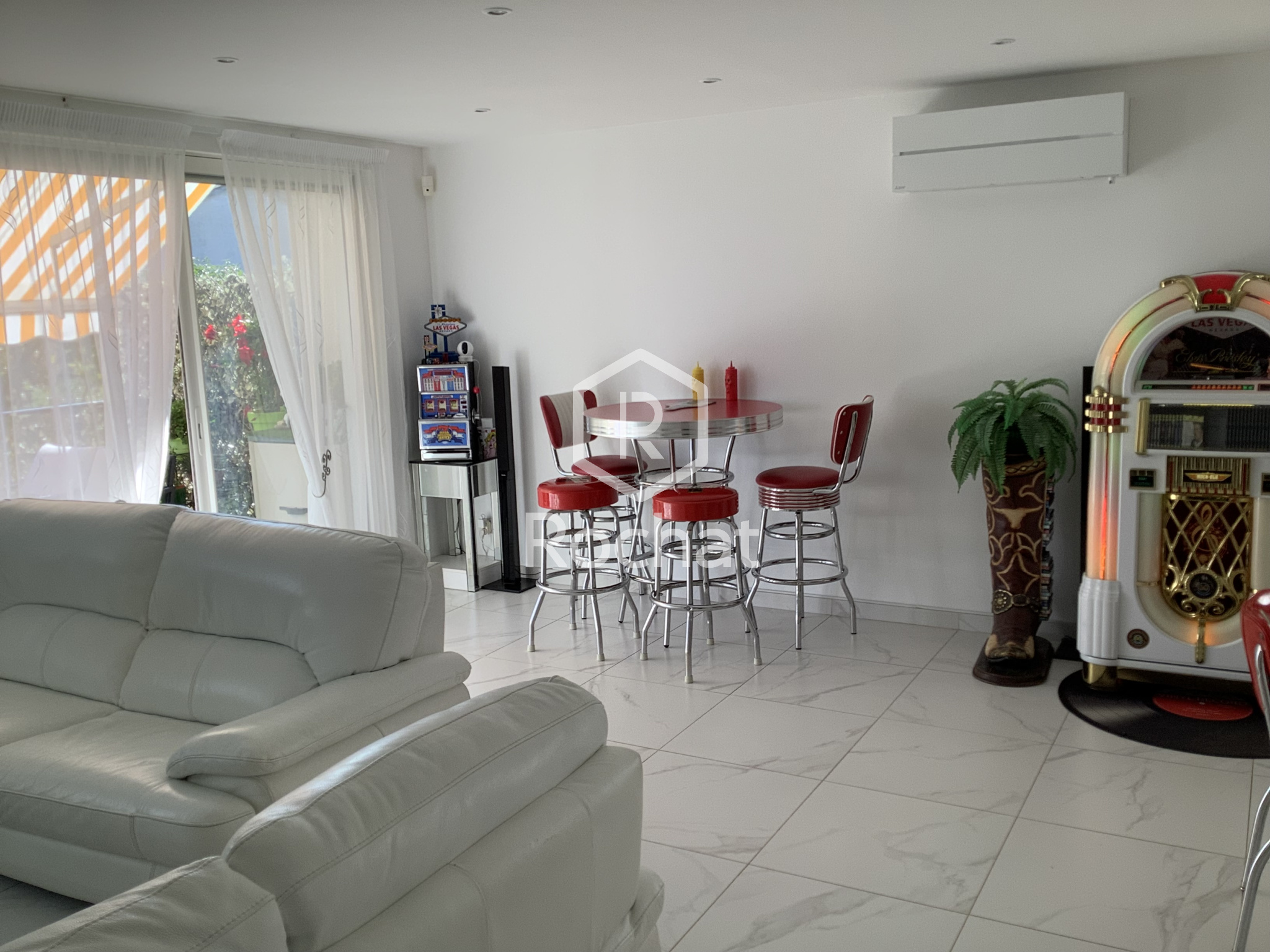 La maison est équipée de radiateurs électriques et d’une pompe à chaleur air/air (RR). Les menuiseries sont en double vitrage, et l’assainissement est raccordé au tout-à-l’égout.