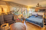 - pièce principale lumineuse avec baies vitrées donnant sur jardin.
