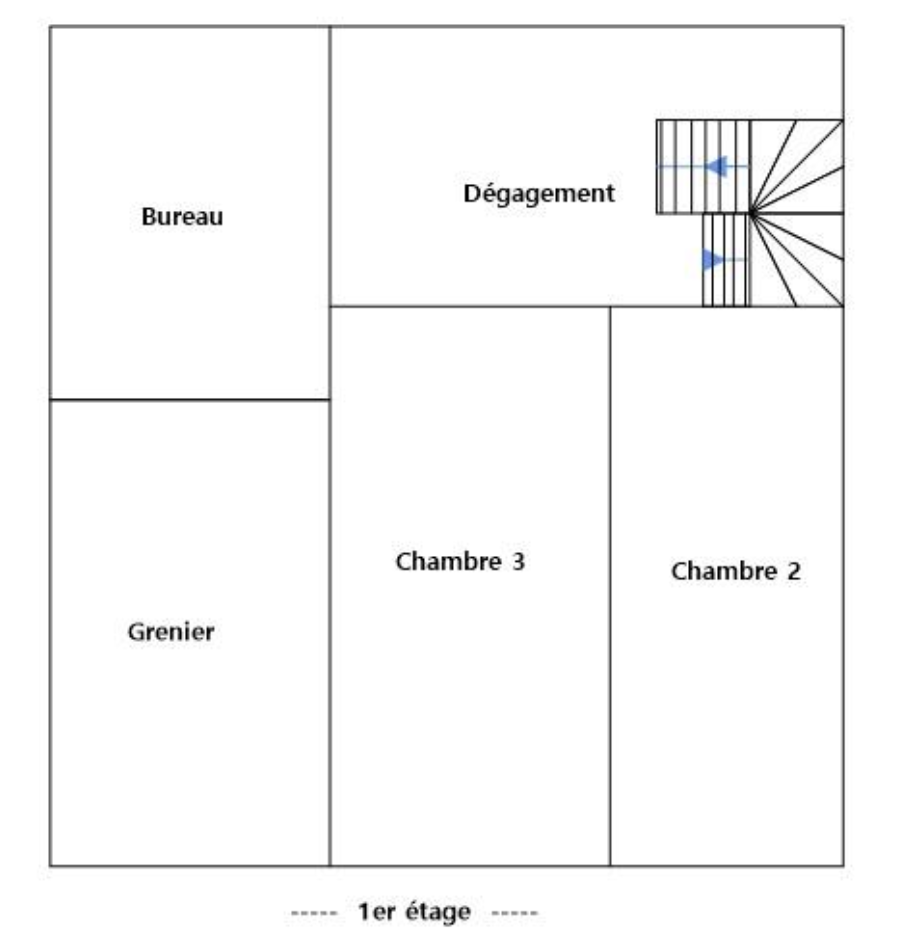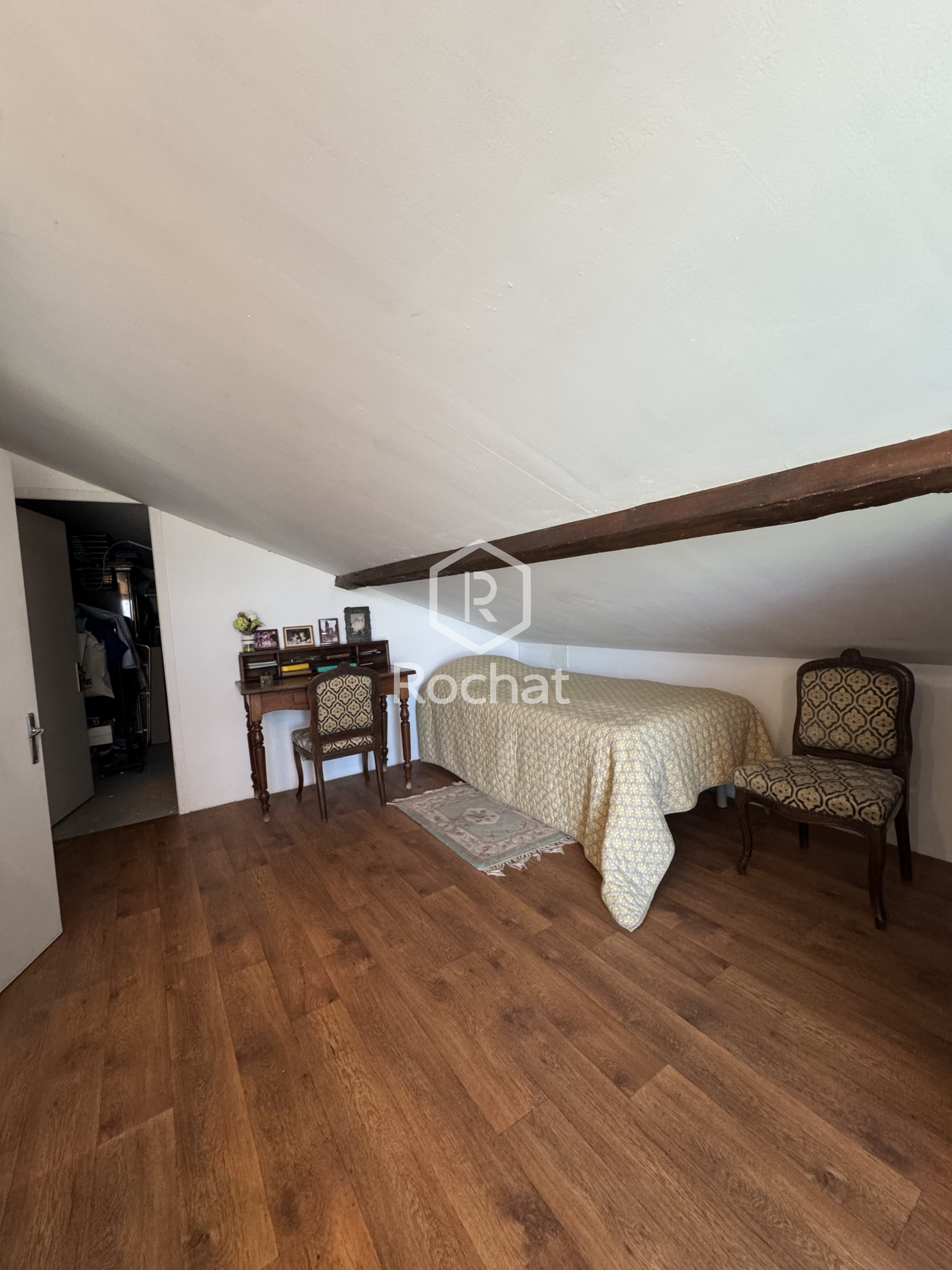 - à l'étage : un palier distribue deux chambres + une pièce mansardée attenante offrant des possibilités de rangement (possibilité troisième chambre)